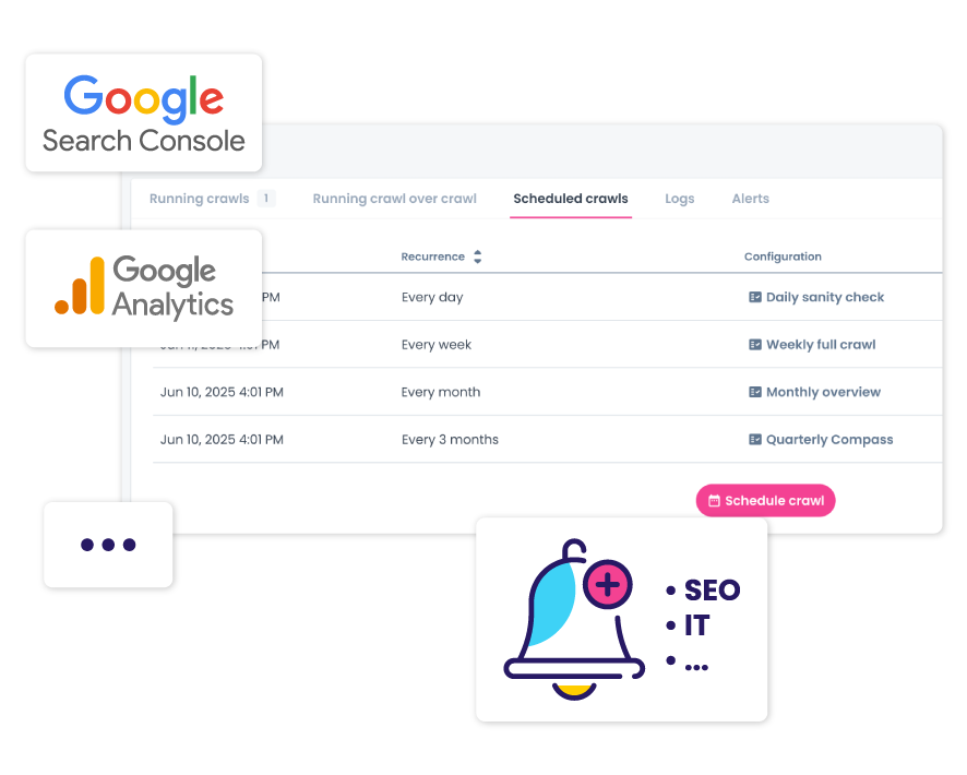 – Cover use cases from audits, to simulating search engines, to crawlability and indexability trouble-shooting, to custom monitoring.